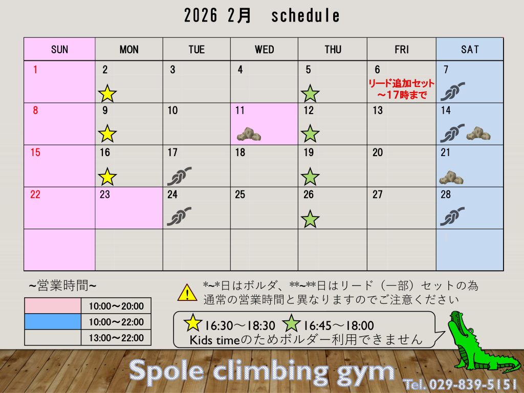 2月は4日(水)と5日(木)でボルダーエリアのマンスリーセットとなります。4日(水)は終日、5日(木)は18時までボルダーエリアがご利用いただけません。